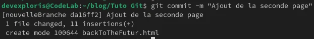 Si on veut faire de gros changements, le mieux c’est de créer une branche qui sert à la feature. Par exemple on va ajouter une page backToTheFutur.html mais avant, on va créer une nouvelle branche à l’aide de la commande :
