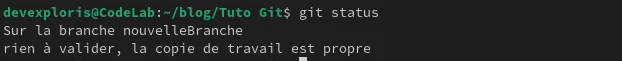 Si tu es un peu perdu dans les branches et les commits, fais un petit git status pour te repérer :