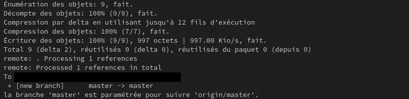 Puis une fois que tu as fais cela, tu fais la seconde partie :git push -u origin master (ici Gitea initialise main mais nous on a commencé le tuto avec master)