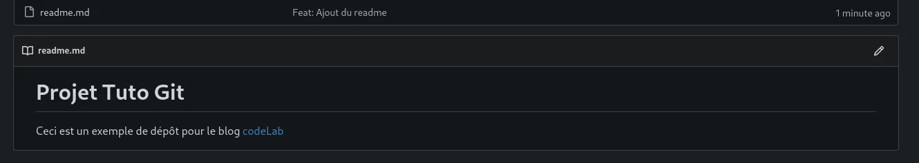 Maintenant tu peux actualiser ta page GitHub et tu devrais voir quelque chose comme ça :
